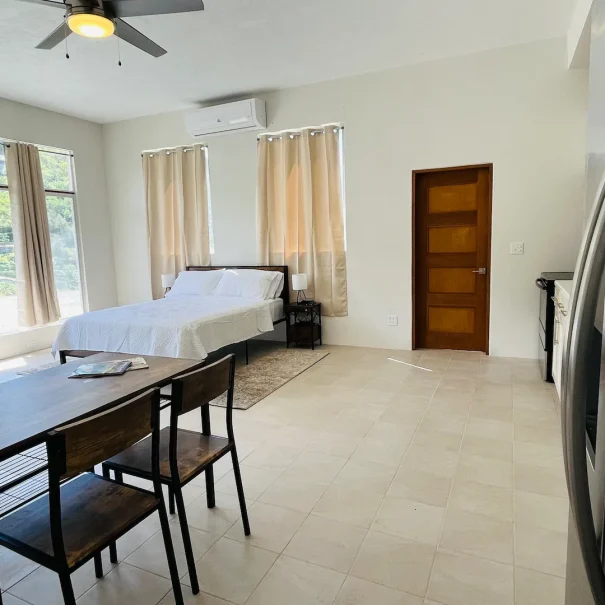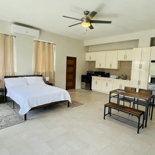 This stylish place to stay is perfect as a hotel alternative. A comfy-queen size bed, air conditioning, linear kitchen, spacious open floor area, voluminous ceiling height, ample parking and proximity to beaches, supermarkets, the ferry terminal, restaurants and Sopher's Hole Marina are all tropical realities that aid you in truly enjoying your stay.